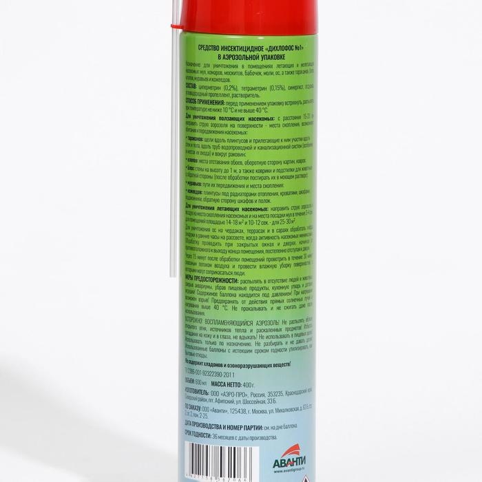 Аэрозоль от всех видов насекомых "Argus MAX" , дихлофос, без запаха, 600 мл