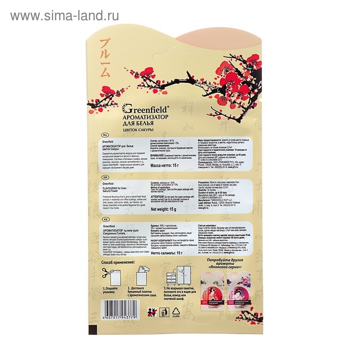 Ароматизатор-освежитель воздуха для белья, Greenfield «Цветок Сакуры»