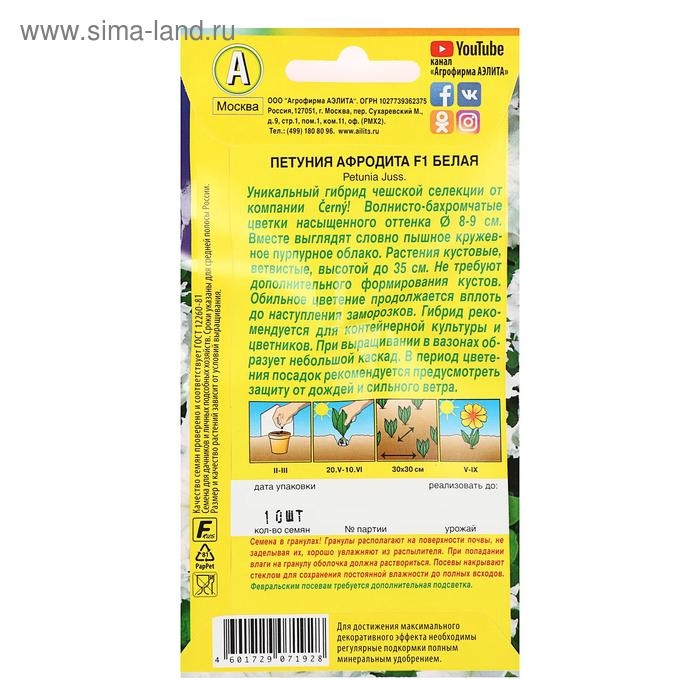 Семена Петуния Афродита F1 белая крупноцветковая, 10 шт