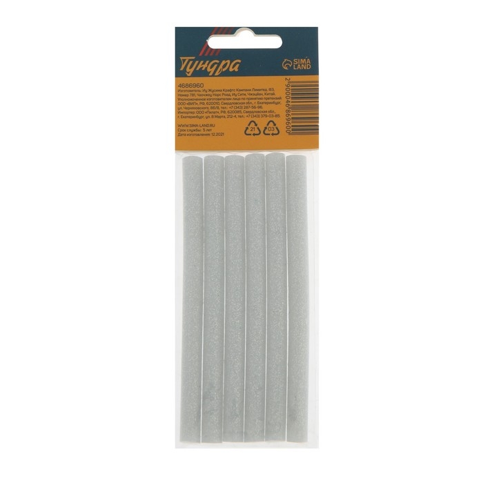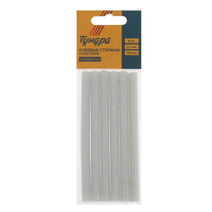 Клеевые стержни ТУНДРА, 7 х 100 мм, серебристые с блестками, 6 шт.