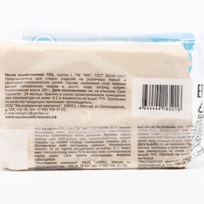 Меры предосторожности: хозяйственное твёрдое мыло не обладает общетоксическим, раздражающим, кожно-резорбтивным и аллергизирующим действием.