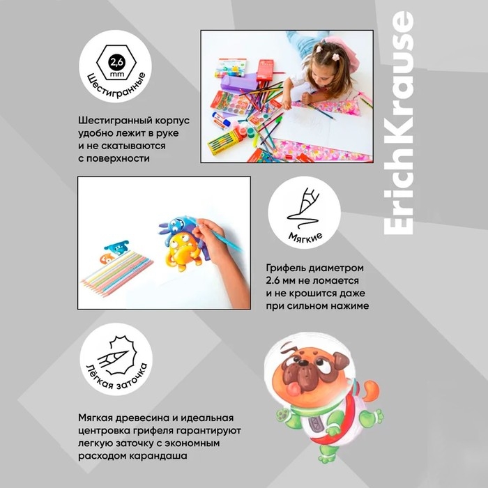 - Грифель диаметром 3 мм не царапает бумагу и не крошится при рисовании.