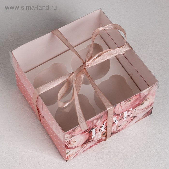 Коробка для капкейков, кондитерская упаковка, 4 ячейки «LOVE», 16 х 16 х 10 см