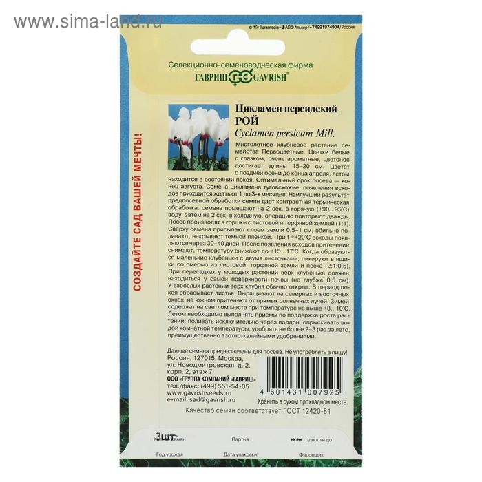 Семена цветов Цикламен "Рой", персидский, 3 шт.