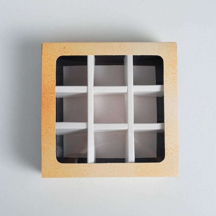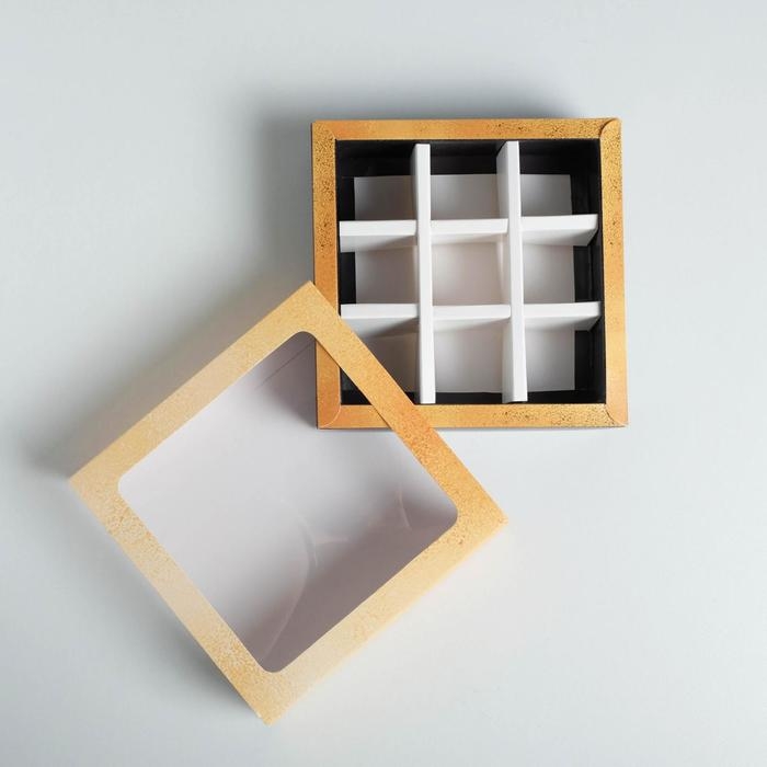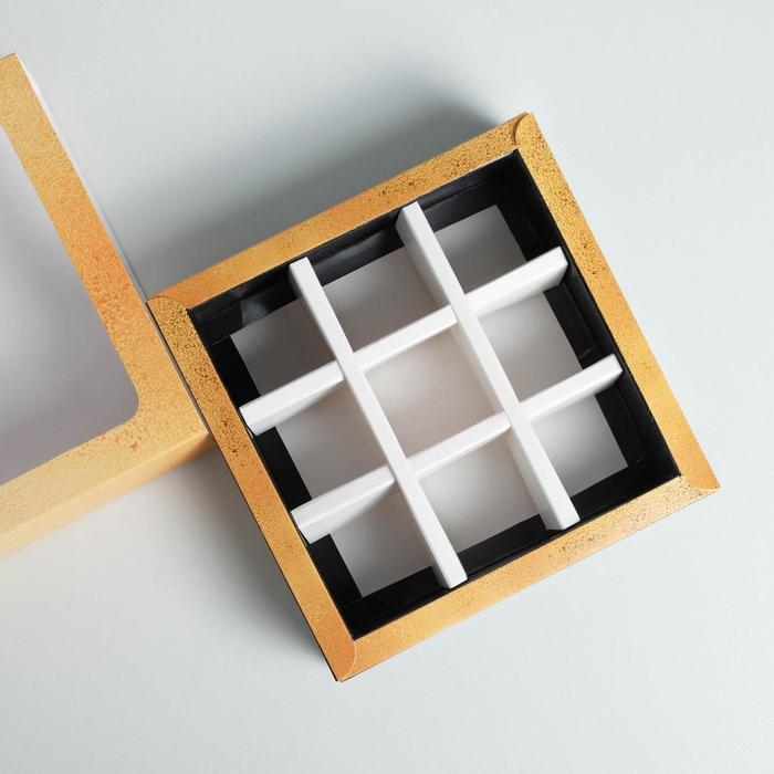 Коробка для конфет, кондитерская упаковка, 9 ячеек, Gold 14.5 х 14.5 х 3.5 см