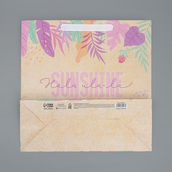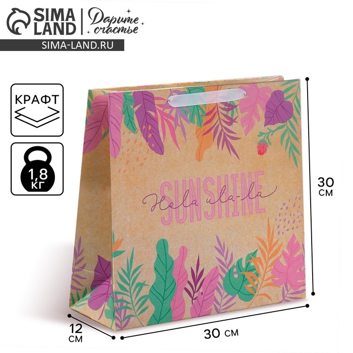 Пакет подарочный крафтовый квадратный, упаковка, «Sunshine», 30 х 30 х 12 см