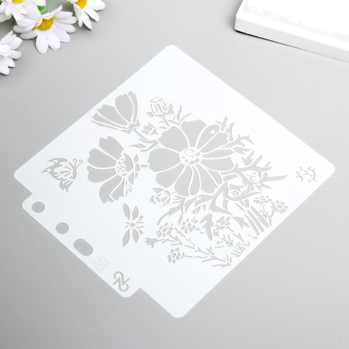 Трафарет пластик "Куст ромашки и бабочки" 13х14 см