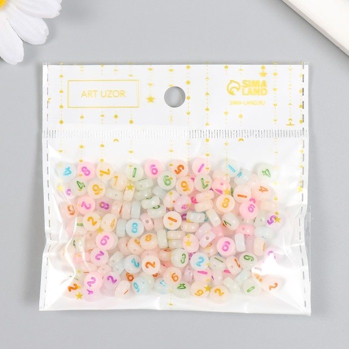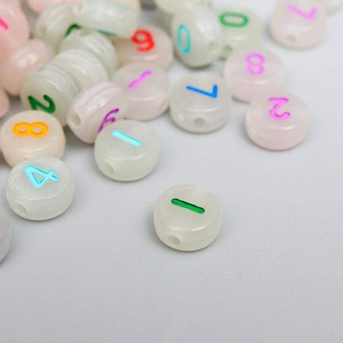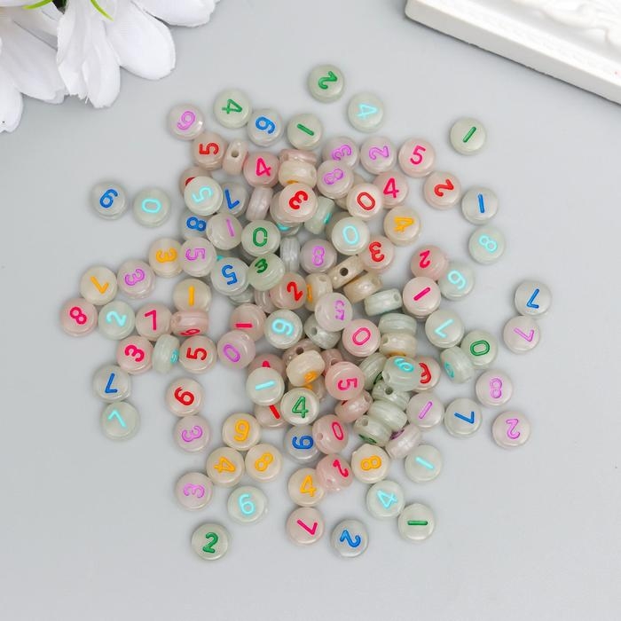 Бусины для творчества акрил фосфорные "Цифры" набор 20 гр 0,4х0,7х0,7 см