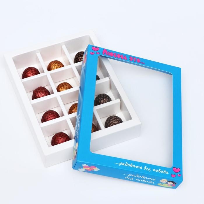Коробка для конфет, 12 шт, "Любовь-это…", голубая, 19 х 15 х 3,6 см
