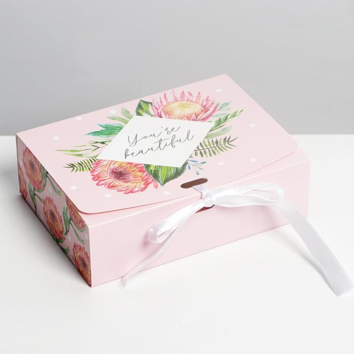 Коробка подарочная складная, упаковка, «Цветы», 16.5 х 12.5 х 5 см, БЕЗ ЛЕНТЫ