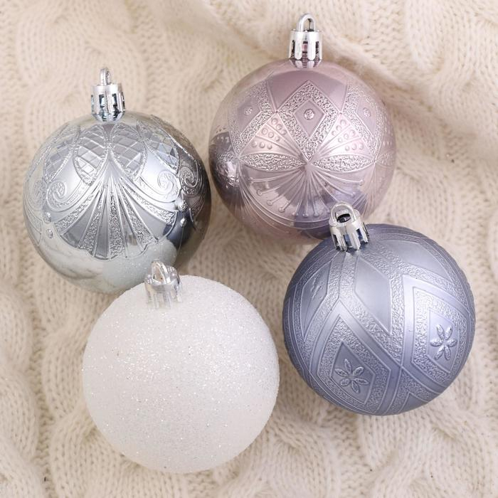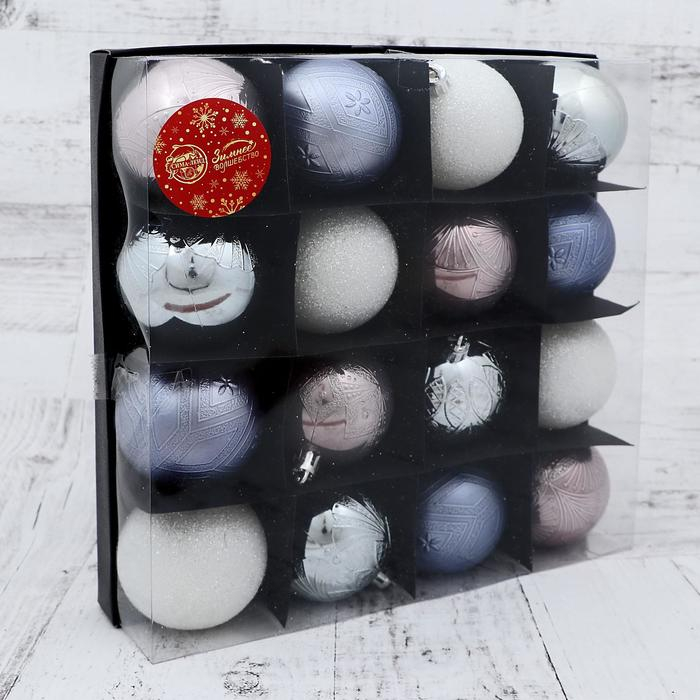 Набор шаров пластик d-6 см, 16 шт "Загадка" серебристо-белый