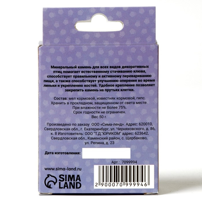 Минеральный камень для всех видов декоративных птиц помогает естественному стачиванию клюва, способствует правильному и активному перевариванию пищи, а также способствует улучшению оперения во время линьки и укреплению костей.