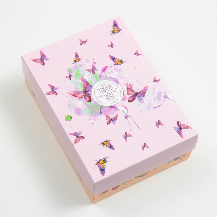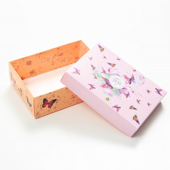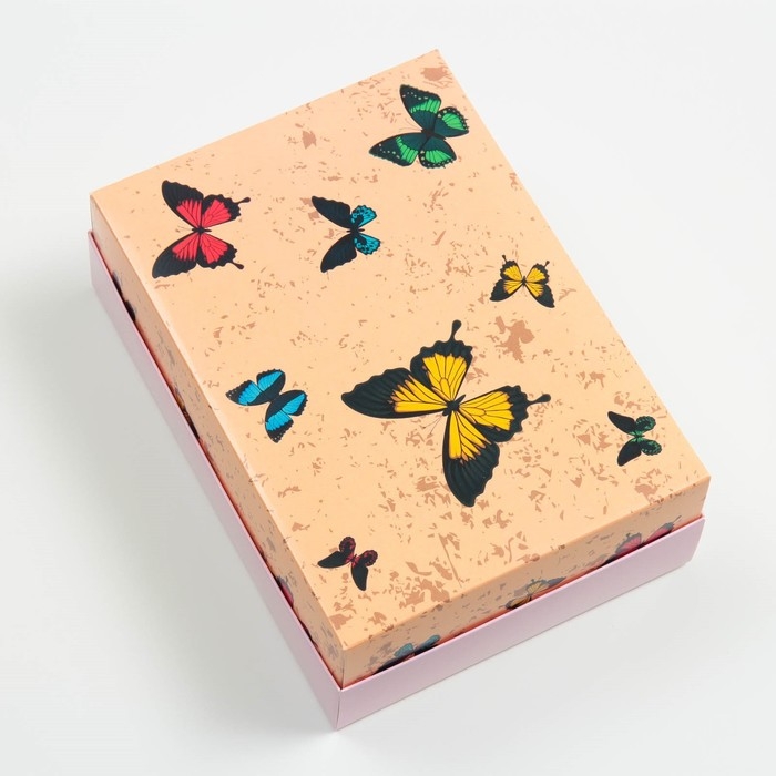 Коробка подарочная, крышка-дно, сборная "Бабочки" , 21 х 15 х 7 см