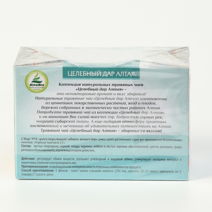 Травяной чай Целебный дар Алтая № 4 регулирующий обмен веществ, 20 фильтр пакетов по 1.5 г