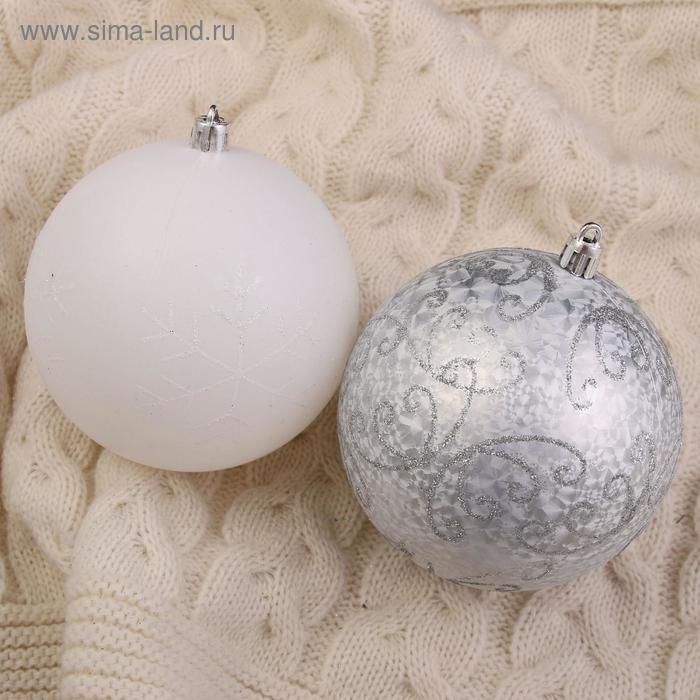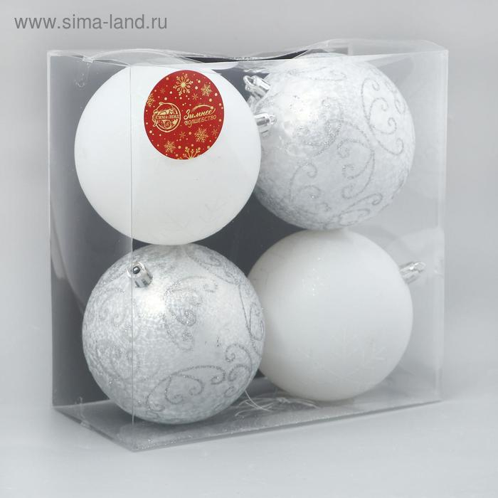 Набор шаров пластик d-10 см, 4 шт "Морозные узоры" серебро белый