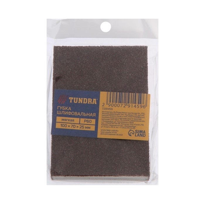 Губка абразивная шлифовальная ТУНДРА, мягкая, 100 х 70 х 25 мм, P60