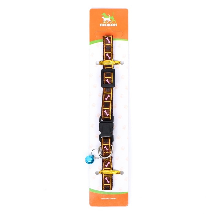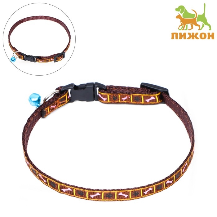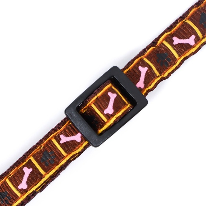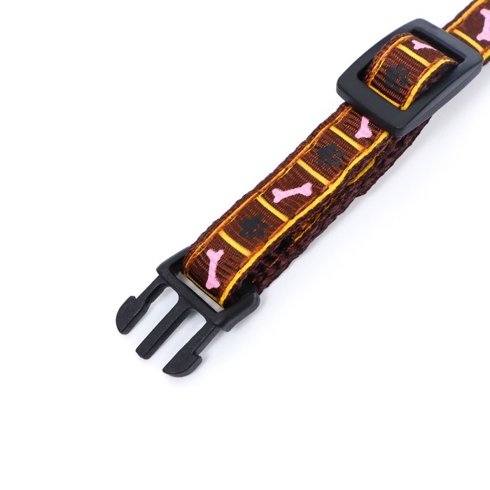 Ошейник двухслойный с фастексом "Косточки и лапки", 30 х 1 см, коричневый