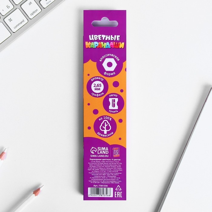 Цветные карандаши 6 цветов заточенные шестигранные деревянный корпус «1 сентября»