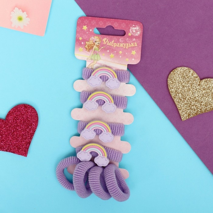 Резинка для волос "Конфетти" (набор 8 шт) радуга, фиолетовый