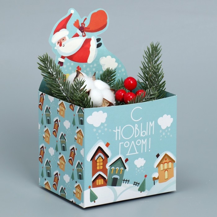 Коробка новогодняя для мини-букетов «С новым годом», 12 х 17 х 10 см, Новый год