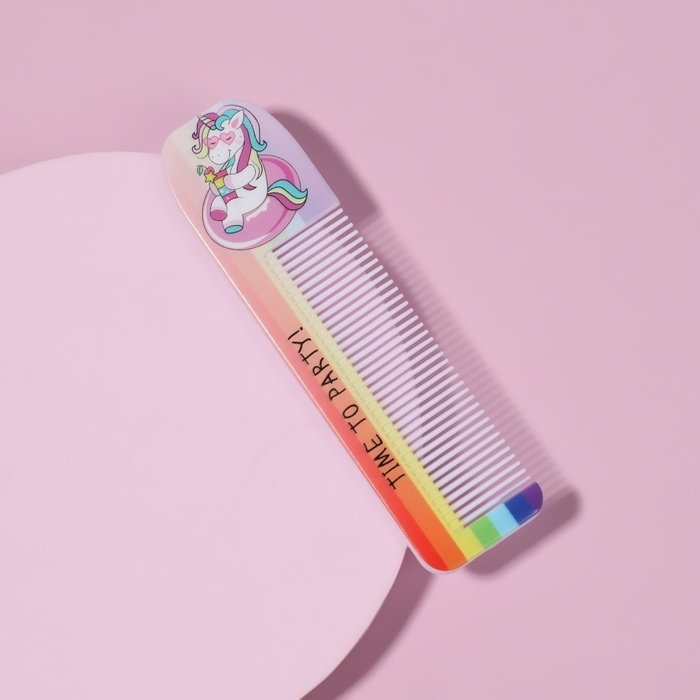 Расчёска «ЕДИНОРОГ ПАТИ», с ручкой, фигурная, 14,7 × 3,7, разноцветная