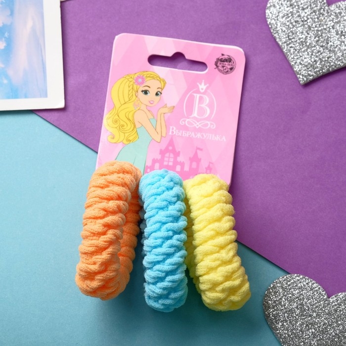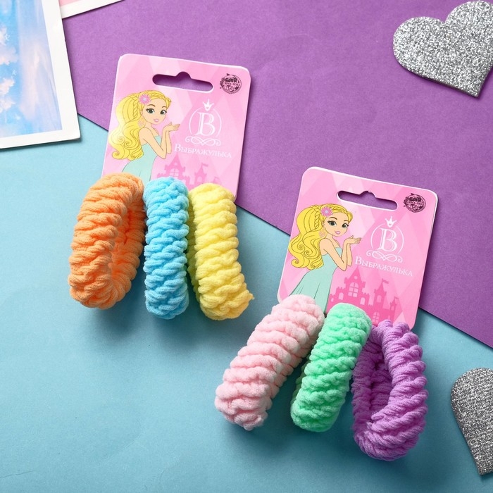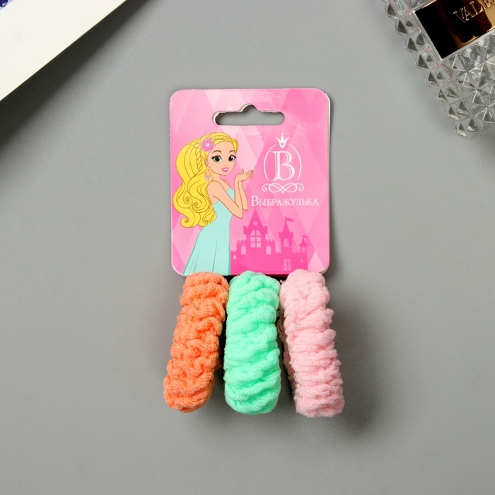 Резинка для волос "Махрушка спорт" (набор 3 шт) пастель лето, 5 см, микс