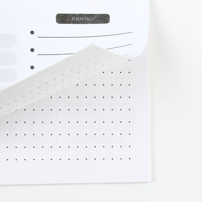Недельный разворот включает в себя, окошко на каждый день недели и общий список дел.