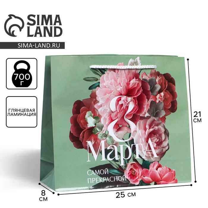 Пакет подарочный ламинированный горизонтальный, упаковка, «Самой прекрасной», ML 21 х 25 х 8 см
