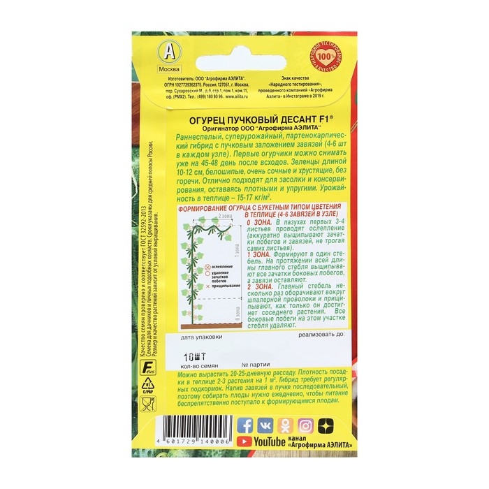 Семена Огурец "Пучковый десант", F1, 10 шт