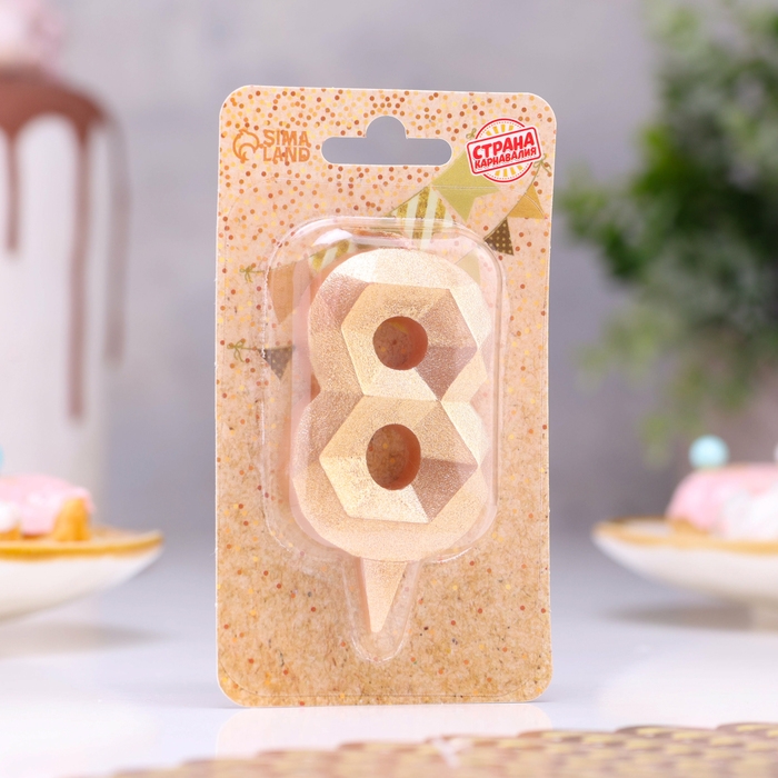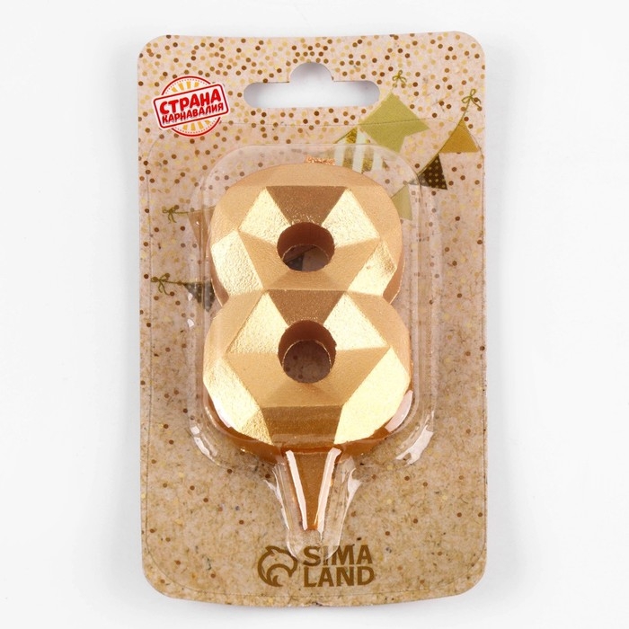 Свеча в торт «Алмаз» цифра 8 золотая, 6,5 см
