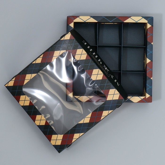 Коробка для конфет, кондитерская упаковка, 9 ячеек, «Самому лучшему мужчине», 14.7 х 14.7 х 3.5 см
