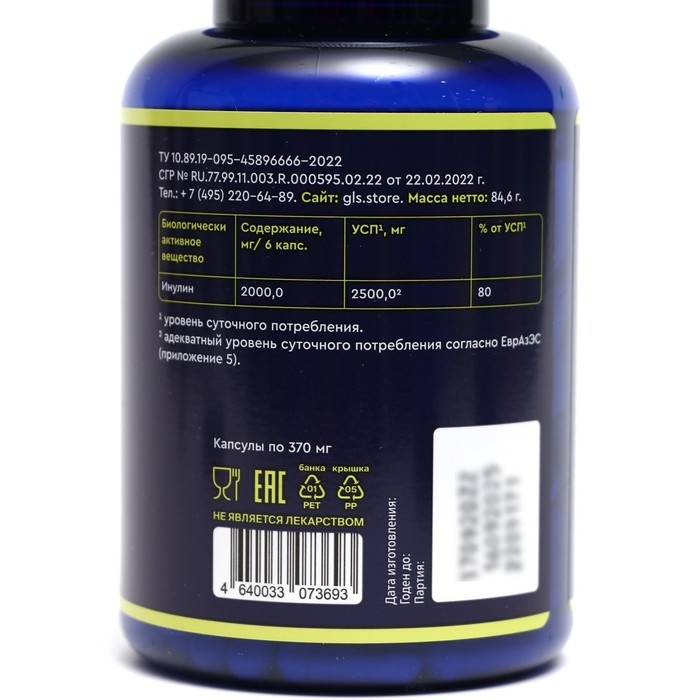 Инулин пребиотик GLS, 180 капсул по 370 мг