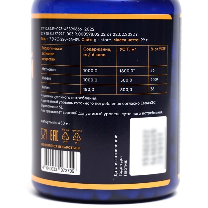 Липотропный фактор GLS для снижения веса, 180 капсул по 450 мг