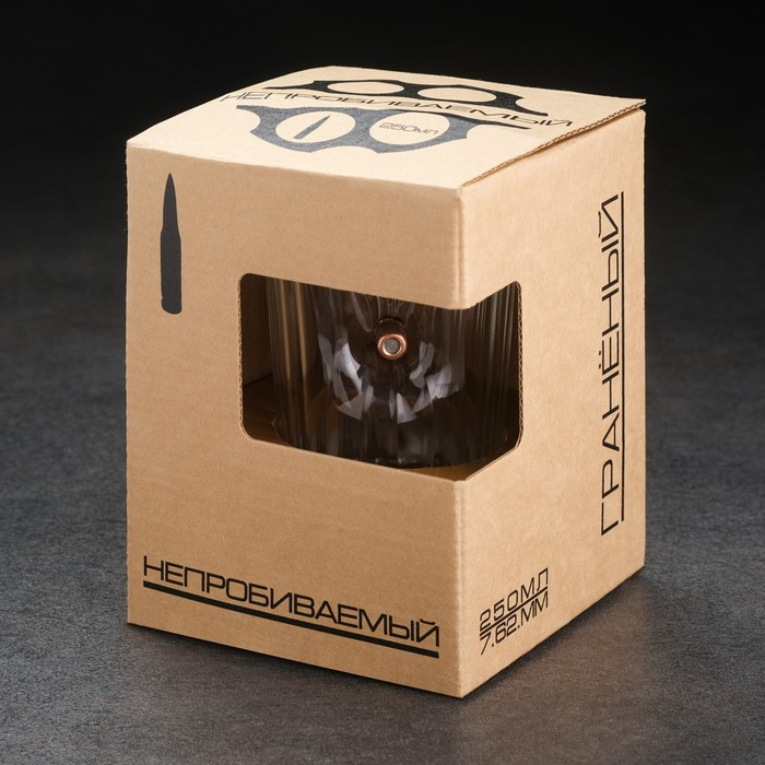 Стакан граненый с пулей "Непробиваемый. Крафт", 250 мл