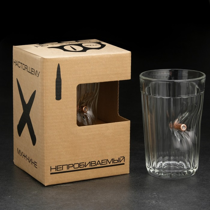 Стакан "Непробиваемый", с пулей, для виски, гравировка, 250 мл