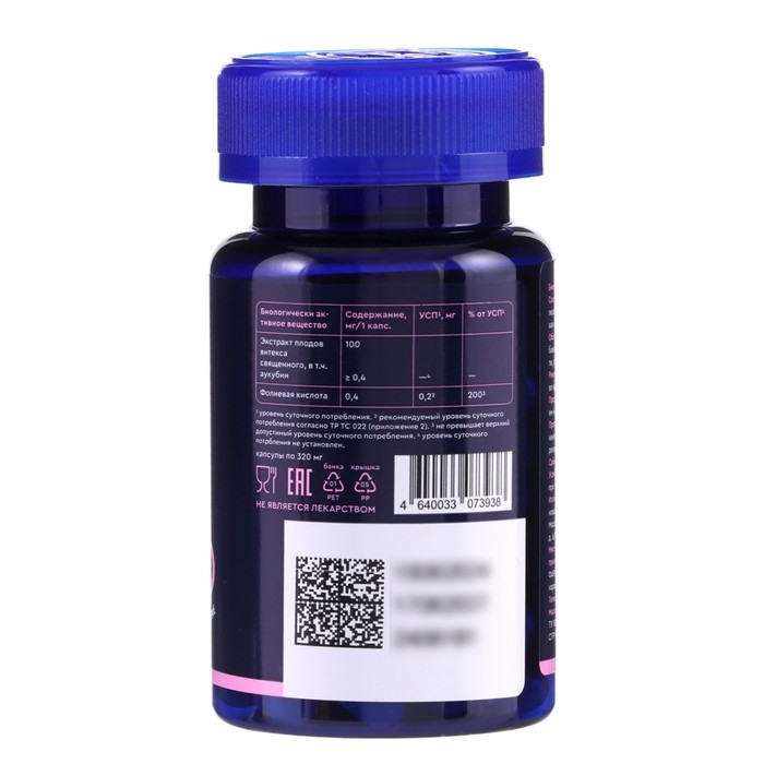 Состав: экстракт плодов витекса священного- 100 мг, фолиевая кислота- 0,4 мг, микрокристаллическая целлюлоза, тальк, капсула (гидроксипропилметилцеллюлоза).
