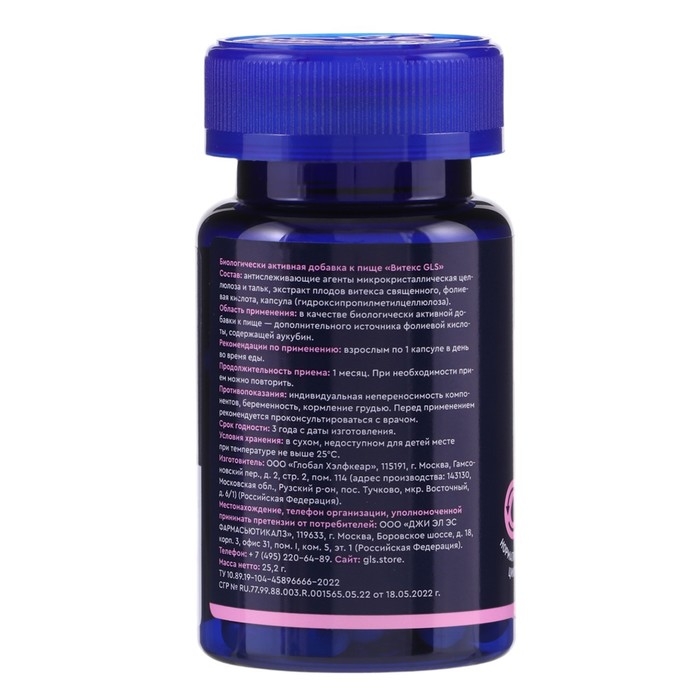 Экстракт плодов "Витекс" GLS с фолиевой кислотой, 60 капсул по 320 мг