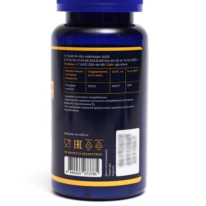 Янтарная кислота GLS, 60 капсул по 450 мг