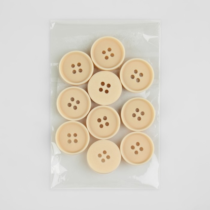 Набор пуговиц, 4 прокола, d = 20 мм, 10 шт, цвет молочный