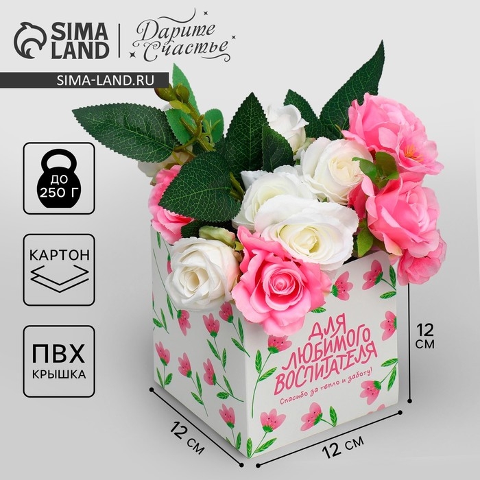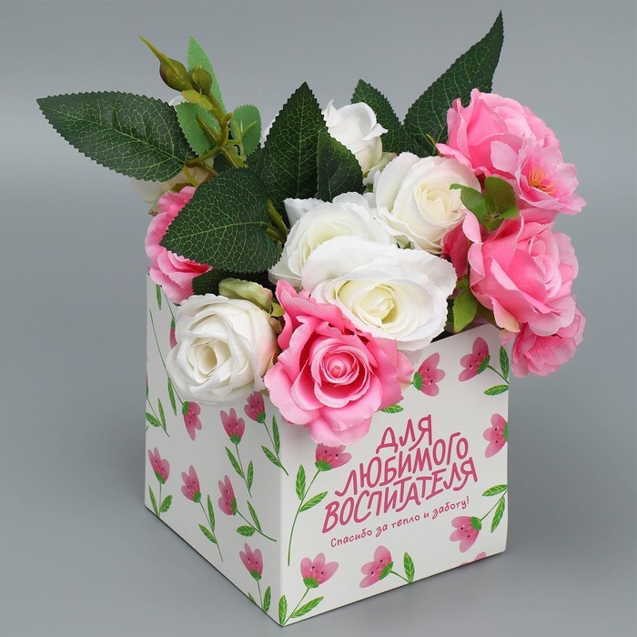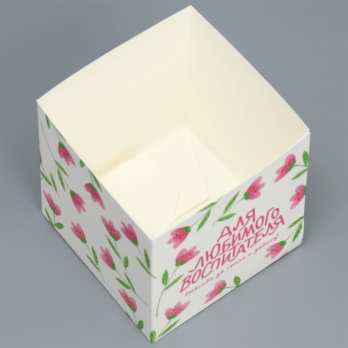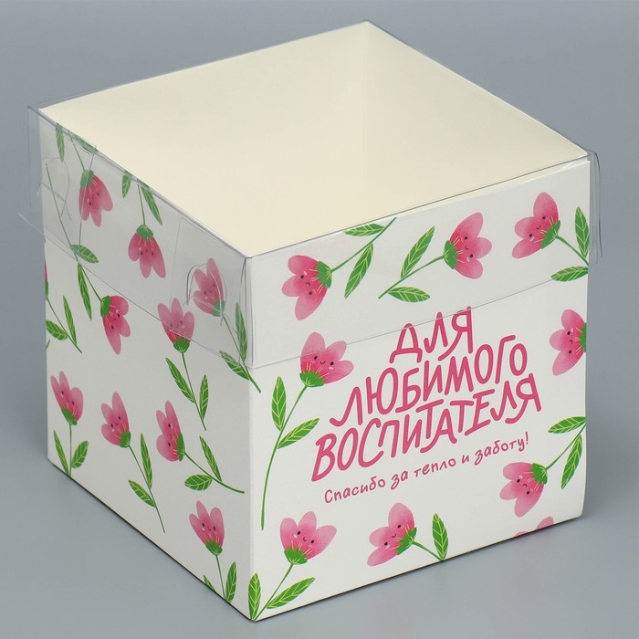 Коробка подарочная для цветов с PVC крышкой, упаковка, «Воспитателю», 12 х 12 х 12 см
