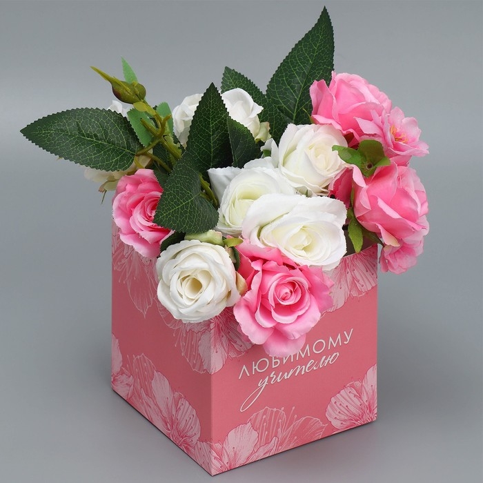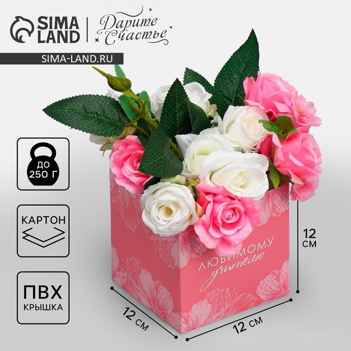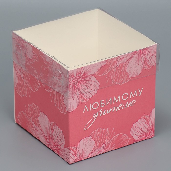 Коробка подарочная для цветов с PVC крышкой, упаковка, «Любимому учителю», 12 х 12 х 12 см