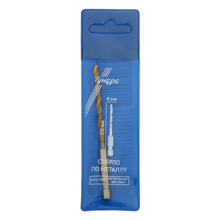 Сверло по металлу ТУНДРА, HSS-Tin, шестигранный хвостовик, 4 х 59 мм