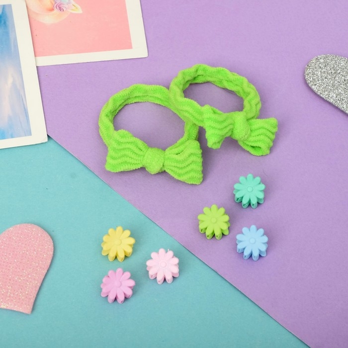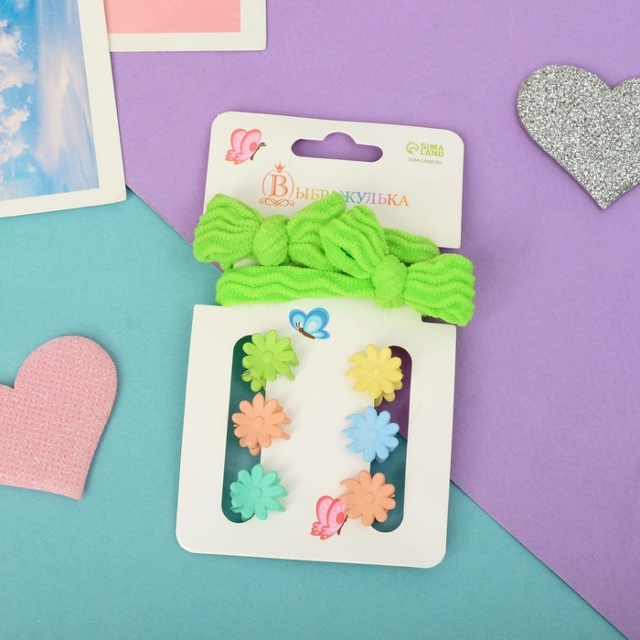 Набор для волос "Сонечка" (2 резинки, 6 крабов 1,1 см) бантики полоски цветочки