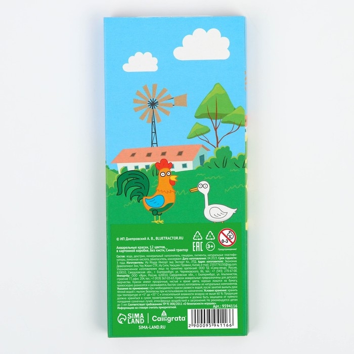 Акварель медовая «Синий трактор», 12 цветов, в картонной коробке, без кисти