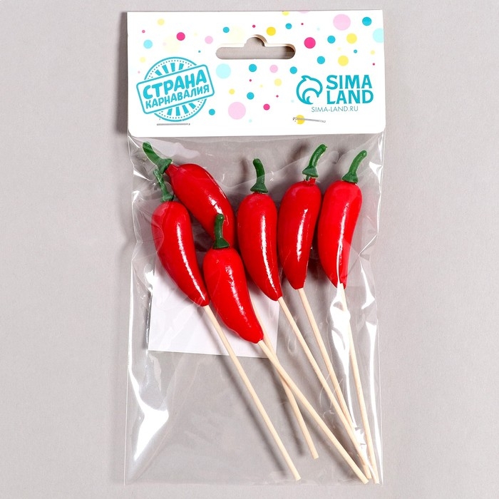 Шпажки «Перец», в наборе 6 штук, цвет красный