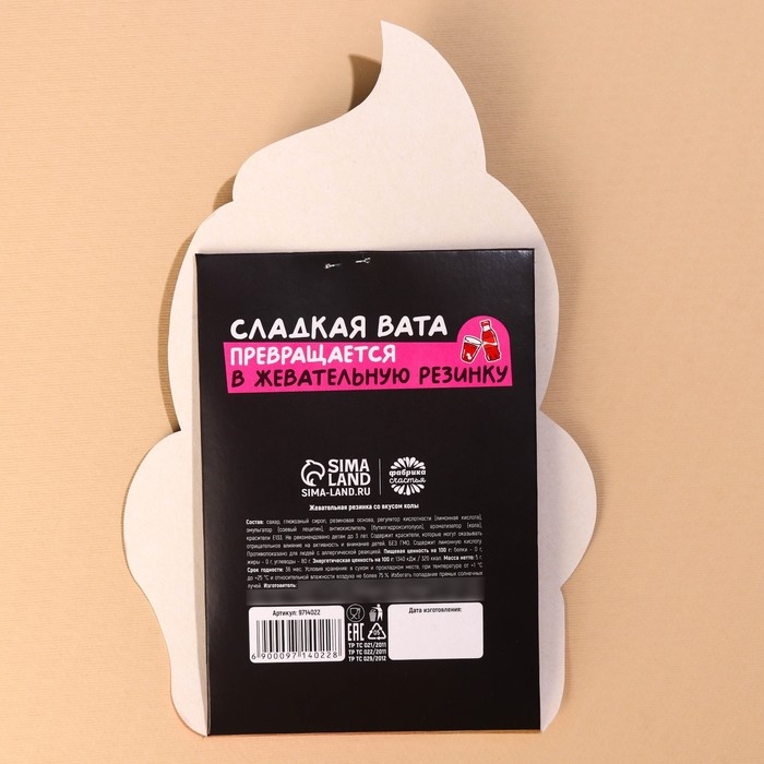 Жевательная резинка-сладкая вата «Полный ватафак», вкус: кола, 5 г.