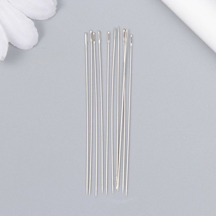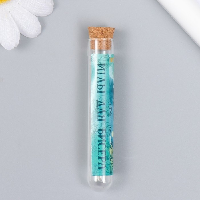 Иглы металл для бисера в стеклянной колбе тонкие набор 10 шт Ø 0,45х55 мм 1,2х1,2х7 см