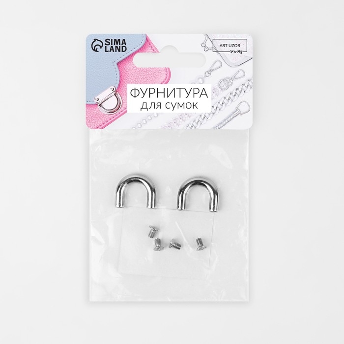 Крепления для ручек на сумку, металлические, 1,8 × 1,5 × 0,5 см, 2 шт, 4 винта, цвет серебряный