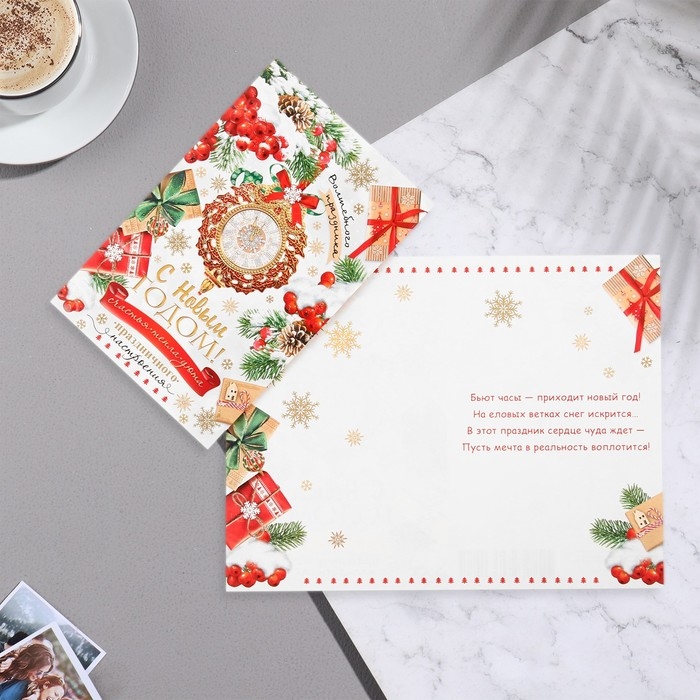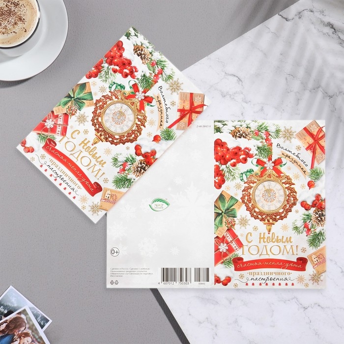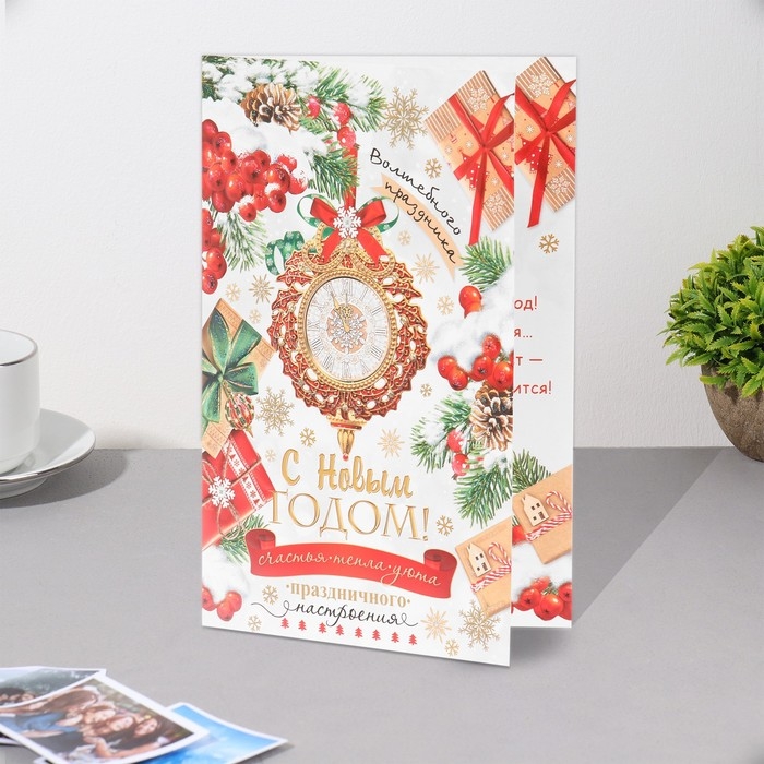 Открытка "С Новым Годом!" глиттер, конгрев, часы, 12,5х19,5 см