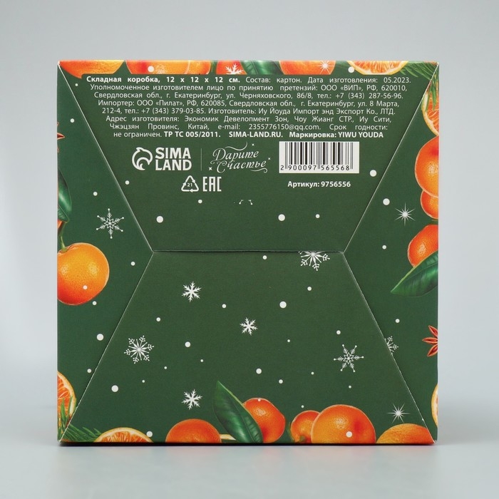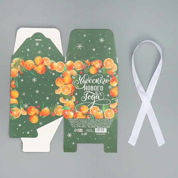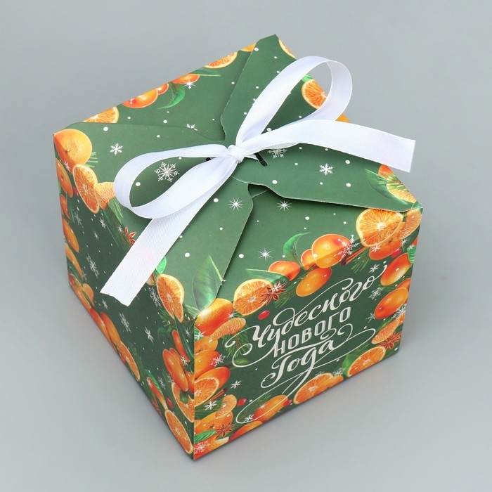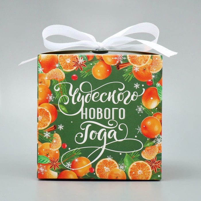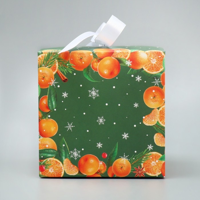 Коробка подарочная новогодняя складная «Чудесного нового года», мандарины, 12 х 12 х 12 см, Новый год